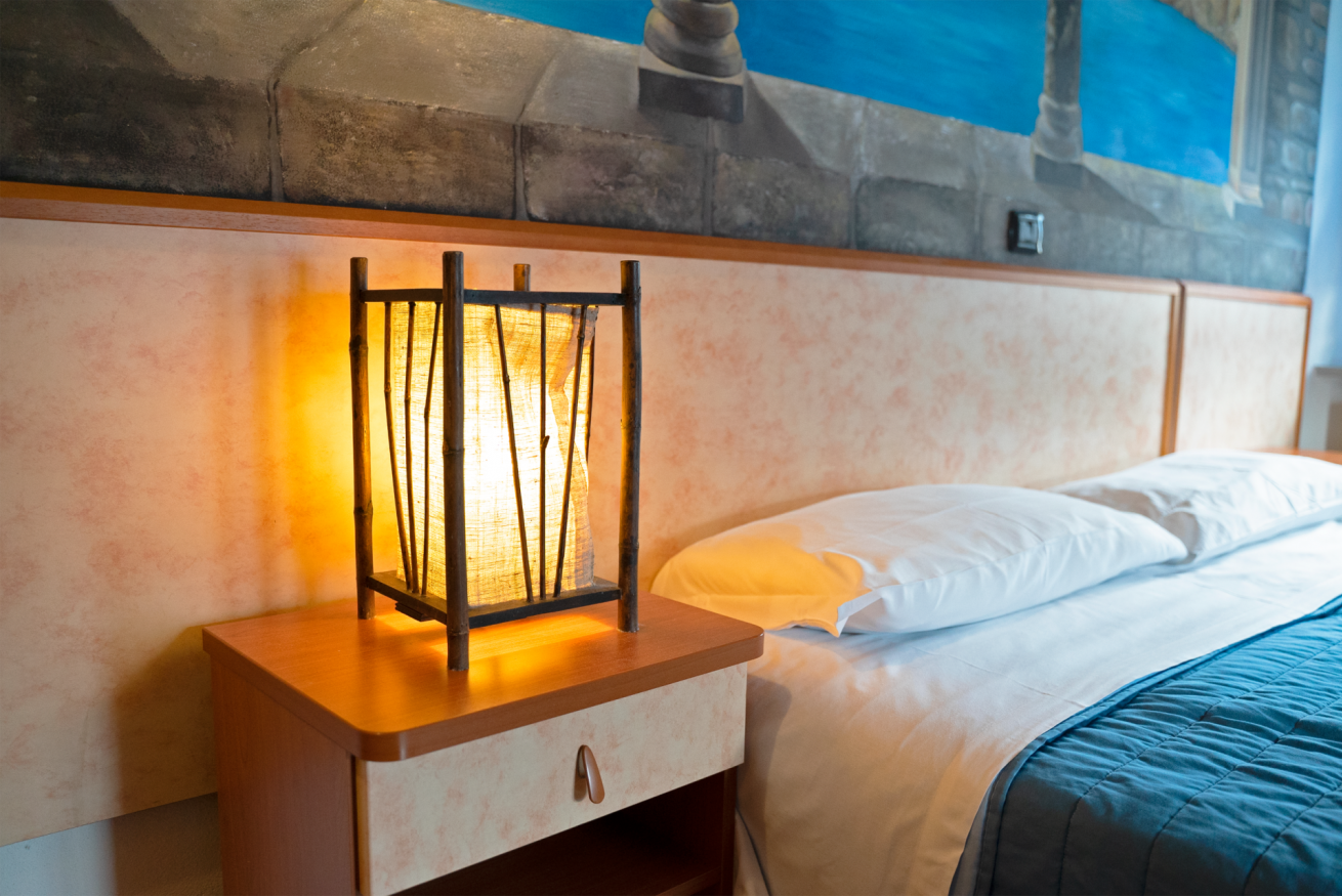 La Vista Mare, è una camera tripla con un letto matrimoniale e un letto singolo, è stata decorata da Jonathan Giordani. La camera dispone di un bagno con doccia. Decorata su tutta la parete della testata del letto con un trompe d’oeil che rappresenta una balconata con archi costruiti in sasso a vista sul mare. Sull’altra parete della camera è invece raffigurata una nicchia con un grammofono.